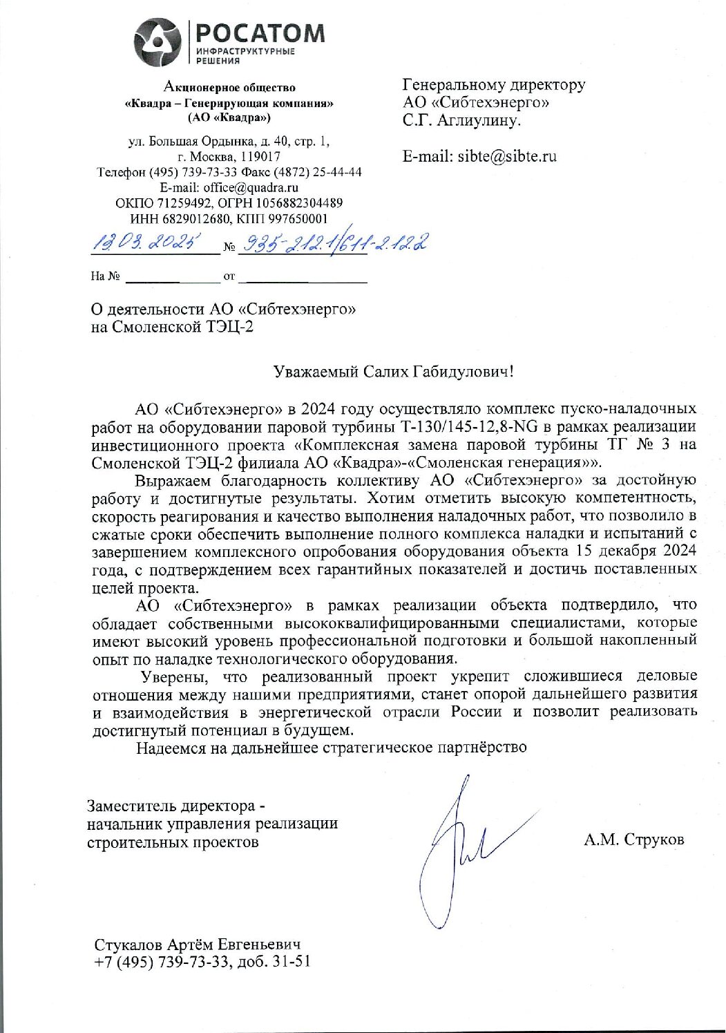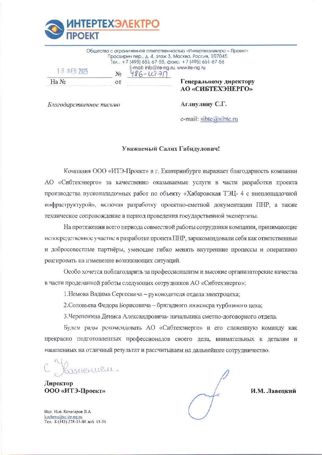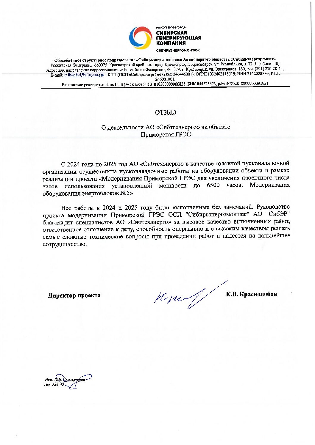 Нам доверяют лидеры отрасли и делятся тёплыми словами! АО «Сибтехэнерго» дорожит профессиональной оценкой со стороны заказчиков и партнёров.